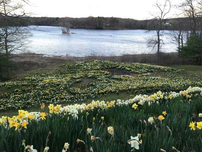 I’ll leave you today with this shot from the Laurel Hills Cemetery in Saco, Maine. This cemetery is a silent, mysterious place. Naturalized daffodils that spill down the bank to the river remind us that life cycles in a beautiful way.