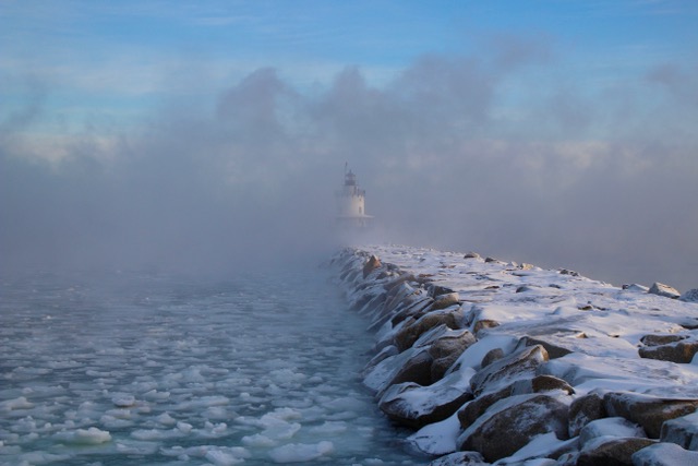 Sending you warm wishes from the beautiful state of Maine where it’s 13 below this morning. Check out this great shot of the “sea smoke” and the frozen ocean by Bug Light, courtesy of Mother Nature and the amazing photographer Tracy Carroll!